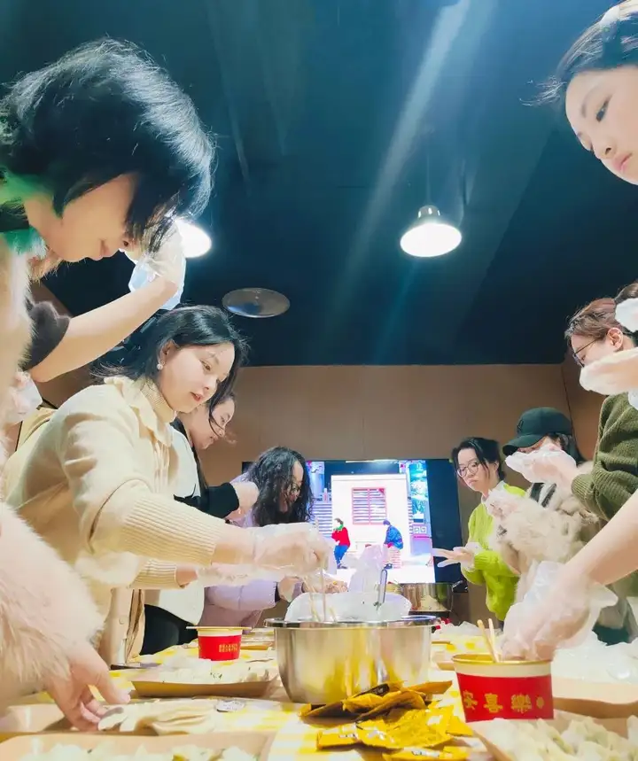 大家分组协作,和馅、包饺、下锅、分享。笑语伴随着热气袅袅升腾,亲手制作的饺子在围坐中共品。简单食材因协作而生动,寻常时刻因团聚而温暖。